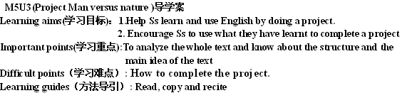 有道:江苏省某市重点中学高二英语导学案:M5U3 Project Man versus nature(牛津译林版)