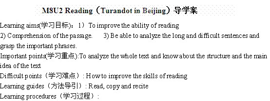 江苏省某市重点中学高二英语学案:m8u2tturandot in beijing:reading(牛津译林版)