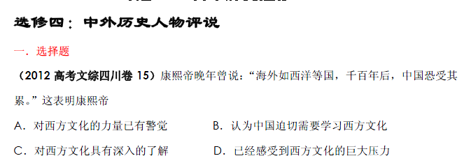 百度:2013最新题库大全2007-2012历史高考试题分项专题16 高中历史选修(4-6)