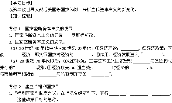 有道:新人教必修2 2012高一历史《战后资本主义的新变化》学案