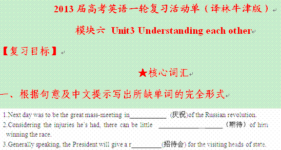 百度:2013年高考英语一轮复习精品学案Ⅵ 专题03 Understanding each other(牛津译林版选修6)