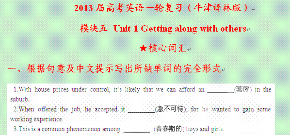 百度:2013年高考英语一轮复习精品学案Ⅴ 专题01 Getting along with others(牛津译林版必修5)