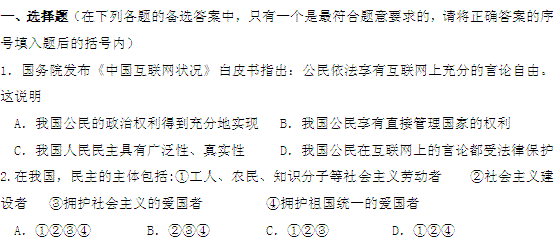 百度:广东省佛山市禅城实验高级中学高一政治《第一单元 公民的政治生活》训练题(必修二)