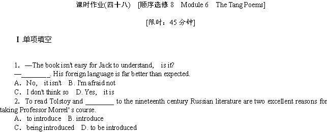 谷歌:2013年高考英语一轮复习课时作业48:Module 6 The Tang Poems(外研版选修8通用)