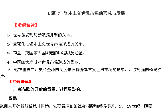 百度:2012年高考历史重考点归纳: 专题07 资本主义世界市场的形成与发展(教学案)(教师版)