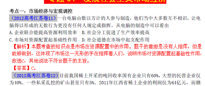 百度:2013最新题库大全2008-2012政治高考试题分项专题04 发展社会主义市场经济_部分1