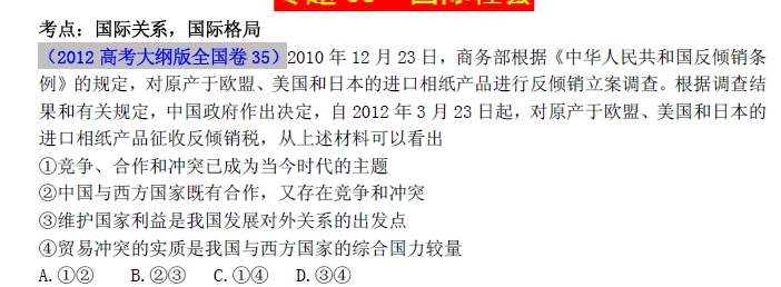 谷歌:2013最新题库大全2008-2012政治高考试题分项专题08 国际社会