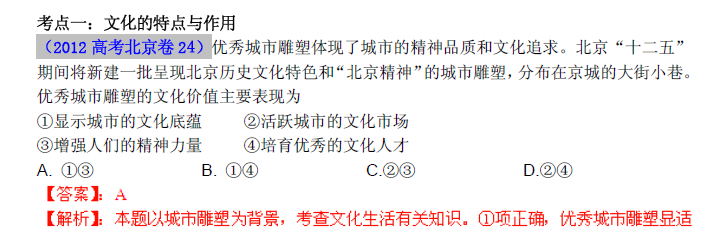 百度:2013最新题库大全2008-2012政治高考试题分项专题09 文化与生活