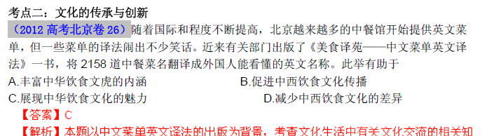 有道:2013最新题库大全2008-2012政治高考试题分项专题10 文化传承与创新