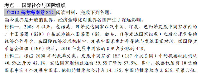 有道:2013最新题库大全2008-2012政治高考试题分项专题17 选考内容 国家和国际组织常识