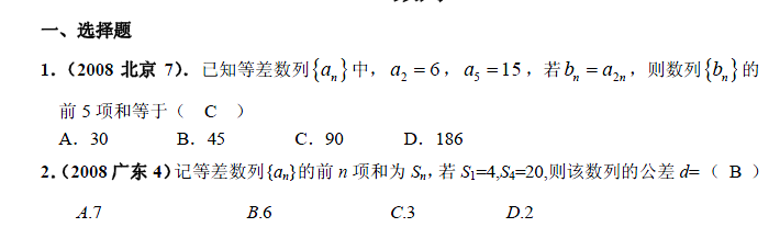 百度:2013最新命题题库大全2005-2008年高考试题解析数学(文科)分项专题04 数列