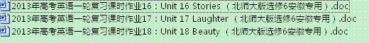 百度:2013年高考英语一轮复习课时作业16-18:Unit 16-18(北师大版选修6安徽专用)