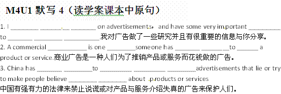 有道:江苏省姜堰市某中学高三英语一轮复习默写:M4U1 Advertising课本中原句(新人教版)