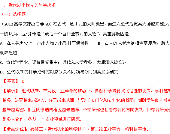 百度:2012年高考试题分项版解析历史专题14 近代以来世界的科技和文艺(教师版)