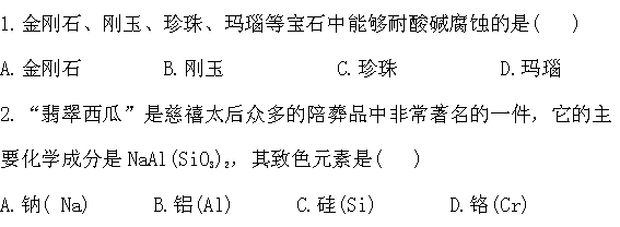 百度:2012高二化学课后巩固作业 4.2走进宝石世界(鲁科版选修1)