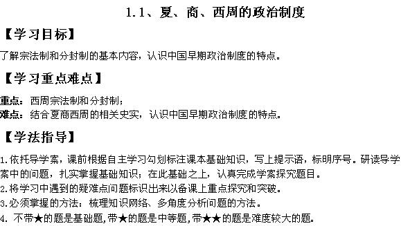 有道:新人教版高一历史学案 1.1.1夏商周的政治制度