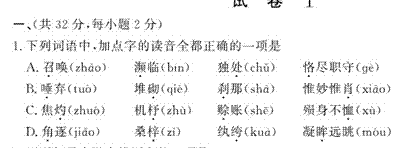 百度:2012年浙江省普通高中会考试题语文(扫描版)