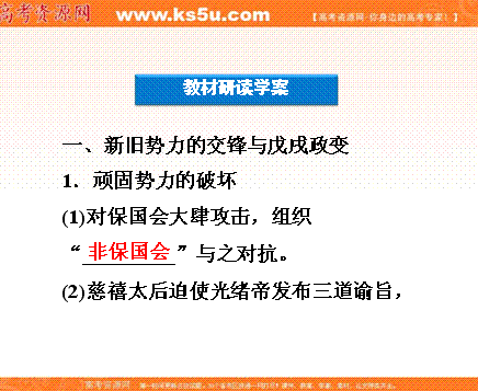 百度:高中历史人民版选修一课件:第九章《中国戊戌变法》第三节
