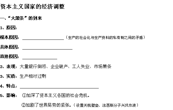 2012年南开实验学校高三历史艺术生知识点梳理:经济危机、罗斯福新政及战后其他国家调整强化记忆