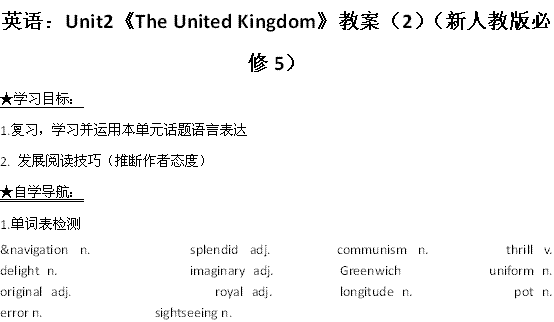 《开学大礼包》2012高二英语精品教学案:unit2 the united kingdom 1(新人教版必修5)