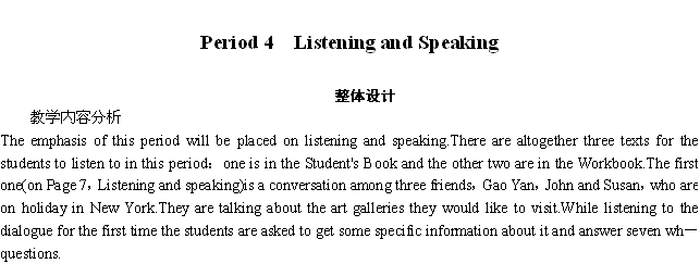 有道:《开学大礼包》2012高二英语精品教案:Unit 1 Art Period 4 Listening and Speaking (人教版选修6)