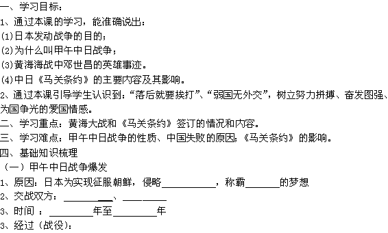 百度:《开学大礼包》2012年高二历史精品学案:2.6《甲午战争与《马关条约》》(华师大版第五分册)