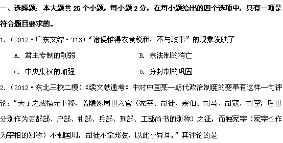 百度:新课标2013届高三配套月考(一)历史试题(B卷)(答案详解)