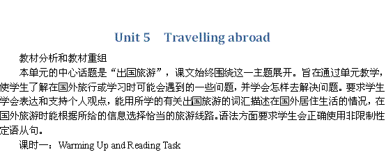 有道:《开学大礼包》2012高二英语精品教案:Unit 5 Travelling abroad Period 1 Warming Up and Reading Task (新人教版选修7)