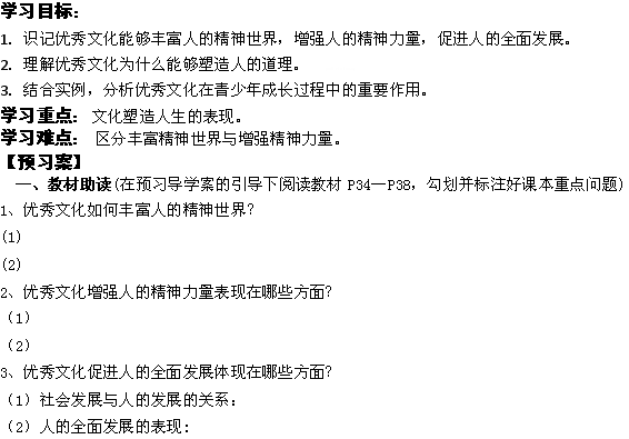 有道:浙江省临海市白云高级中学高三政治复习:2.2 文化塑造人生 学案 人教版