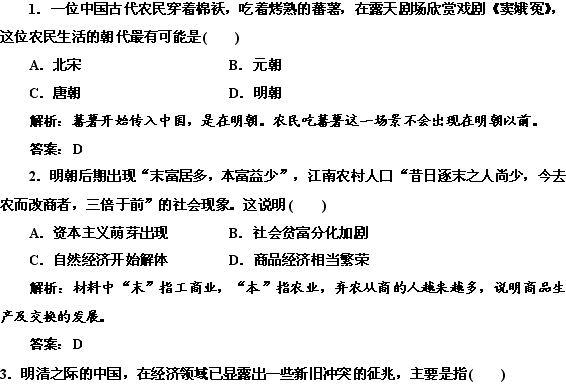 百度:2013高一历史岳麓版必修2课下作业 含解析 第一单元 第6课 课时跟踪训练 Word版含答案