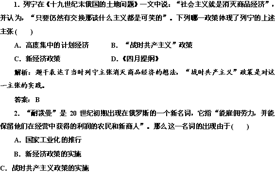 百度:2013高一历史岳麓版必修2课下作业 含解析 第三单元 第14课 随堂基础巩固 Word版含答案