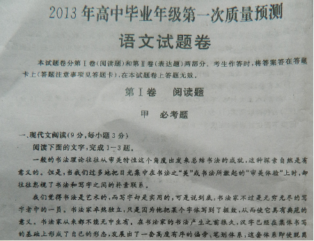百度:河南省清丰一中、郑州一中2013届高中毕业班第一次质量预测语文试题 扫描版含答案