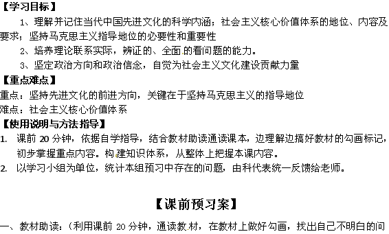 百度:广东省惠州市惠阳一中实验学校高二政治《9.1 坚持先进文化的前进方向》学案