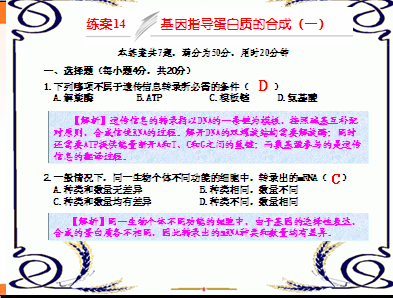百度:2013学年高一新人教版生物必修2练案课件 练案14 基因指导蛋白质的合成(一)