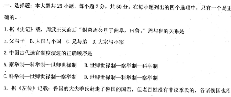 百度:山东省菏泽市鄄城二中2012-2013学年高一上学期学分认定考试历史试题 扫描版含答案