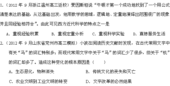 百度:河北省衡水中学2013届高三人民版历史必修三一轮能力提升卷(含解析):专题7 近现代世界的科学技术专题训练 Word版含答案