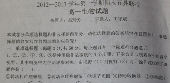 谷歌:河北省邯郸市2012-2013学年高一上学期期末五县联考生物试题 扫描版含答案