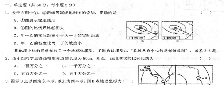 百度:云南省昆明一中2012-2013学年高二上学期期末考试 地理 扫描版含答案
