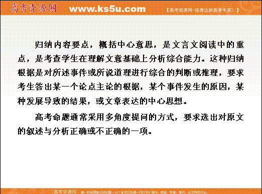 有道:2013学年高二语文课件:专题四 归纳内容要点,概括中心意思(新人教版必修4)
