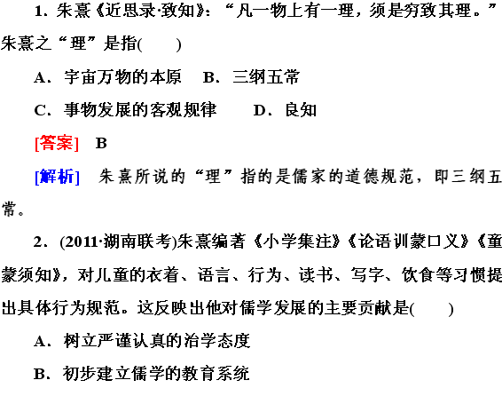 百度:高三历史总复习必修3同步练习 含解析 3-1-27宋明理学及明清之际活跃的儒家思想(新人教版) Word版含答案