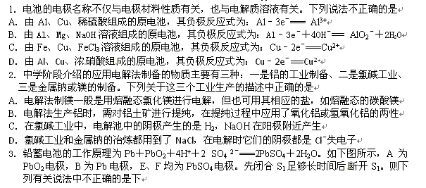 百度:江西省玉山一中2013届高三化学专题训练:电化学 Word版含答案