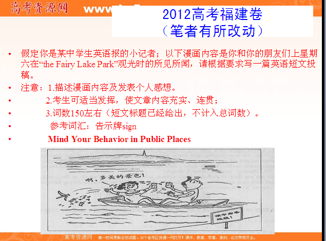 百度:2013届高三英语书面表达专题指导、练讲及习作评析(第二部分专题练评)(专题二 图画式1)
