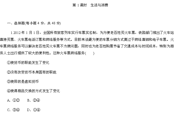 百度:二轮推荐2013届高中新课标二轮政治总复习 湖南用 限时训练 1(人教版) Word版含答案