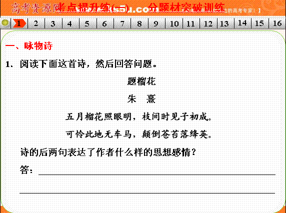 谷歌:2014高考语文(人教版 鲁京津专用)一轮复习《配套课件》古代诗歌鉴赏 考点提升练一