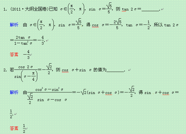 百度:《聚焦典型题》(苏教版)2014届高考一轮数学(理):《二倍角、简单的三角恒等变换》(一轮复习限时提分训练基础到提升含精细解析) Word版含答案