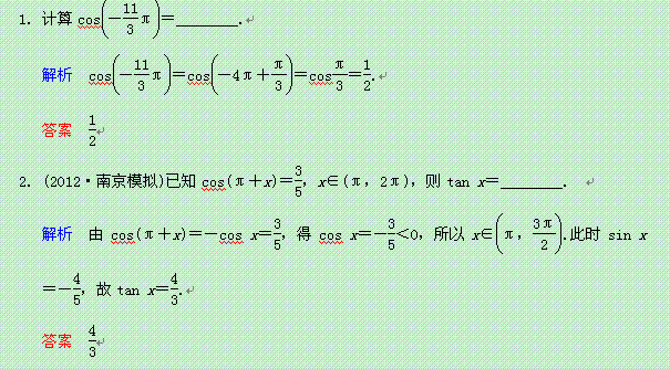 百度:《聚焦典型题》(苏教版)2014届高考一轮数学(理):《同角三角函数的基本关系与诱导公式》(一轮复习限时提分训练基础到提升含精细解析) Word版含答案