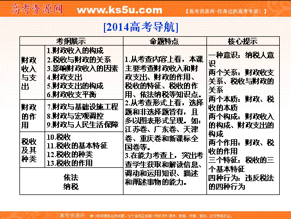 有道:《优化方案》2014高考政治一轮复习课件:经济常识 第三单元第八课 财政与税收 新人教版必修1