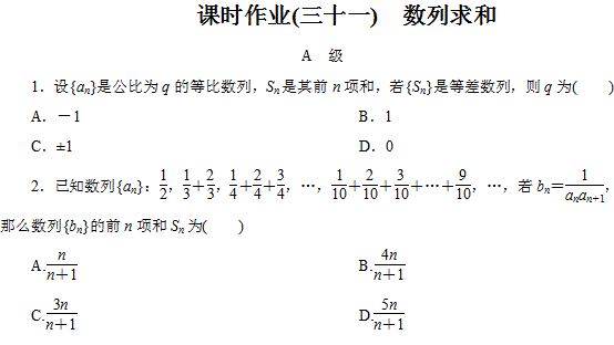 谷歌:2014高三大一轮复习讲义数学(文)课时作业31:数列求和(北师大版) Word版含解析