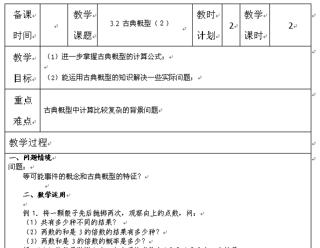 谷歌:江苏省灌云县四队中学2013-2014学年高中数学教案:古典概型(2) (苏教版必修3) Word版