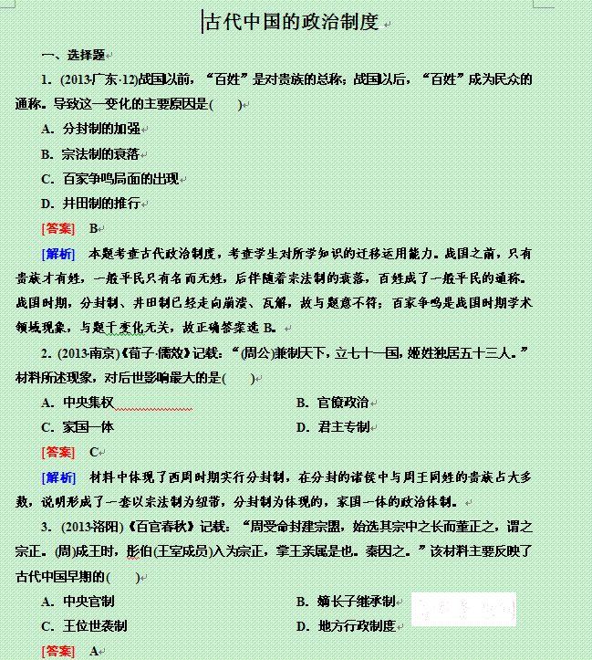 百度:《小题狂练 大题冲关》2014历史二轮专题突破:古代中国的政治制度 Word版含解析